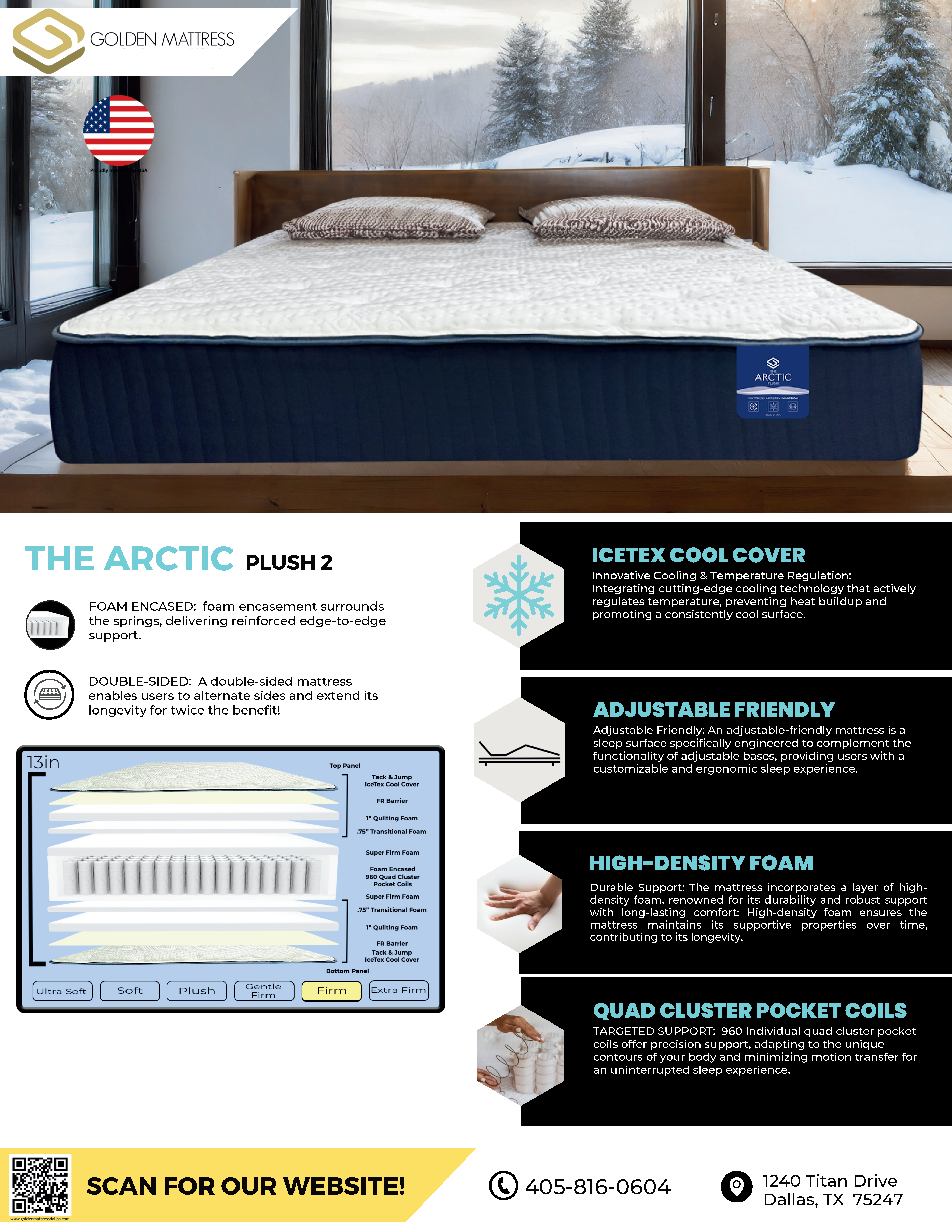 Introducing the Arctic Double Sided Plush Mattress, a 13-inch thick embodiment of luxury and innovative design. This mattress is meticulously crafted to provide an exceptional firm sleep experience, blending advanced technologies with superior comfort features.