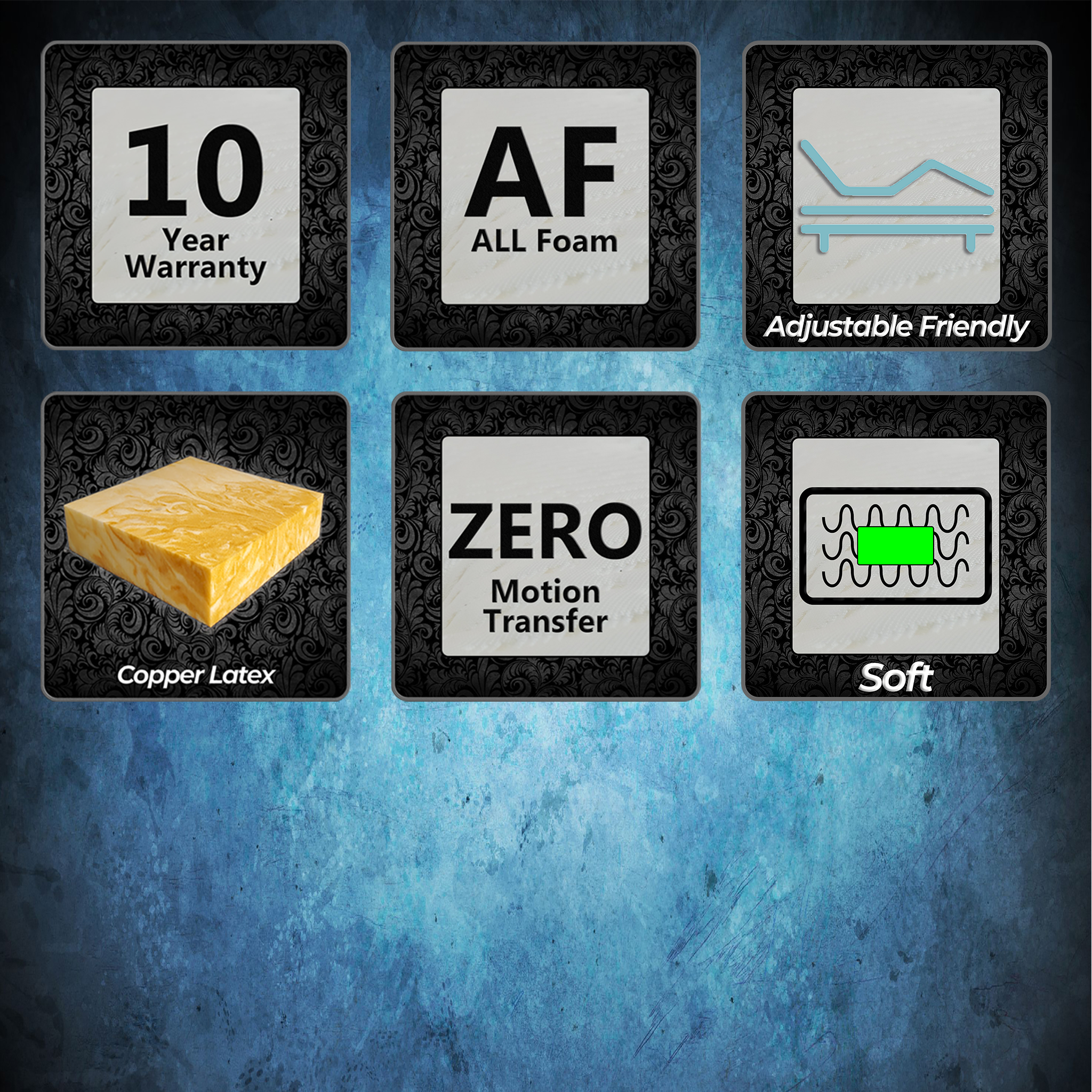 The Milan Three has yet a different and softer feel than the rest of the collection. This mattress looks excellent on an adjustable base. This is an all foam mattress with a 2 in quilted tack and jump cover. Also, It features copper foam, which both wicks heat away from the body and kills 99% of bacteria and fungus. It also doesn't get hard when it gets cold. It's consistent on and off your floor with a soft feel. This is another top seller.