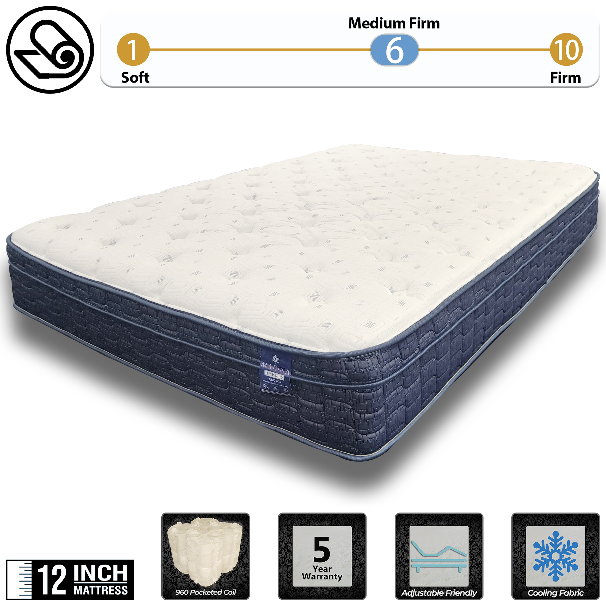 Discover unparalleled comfort with the Marina Euro Top Mattress, meticulously crafted to ensure a luxurious and restorative night's sleep. This mattress boasts an impressive combination of advanced support technology and premium materials, designed to cater to your unique sleep needs.