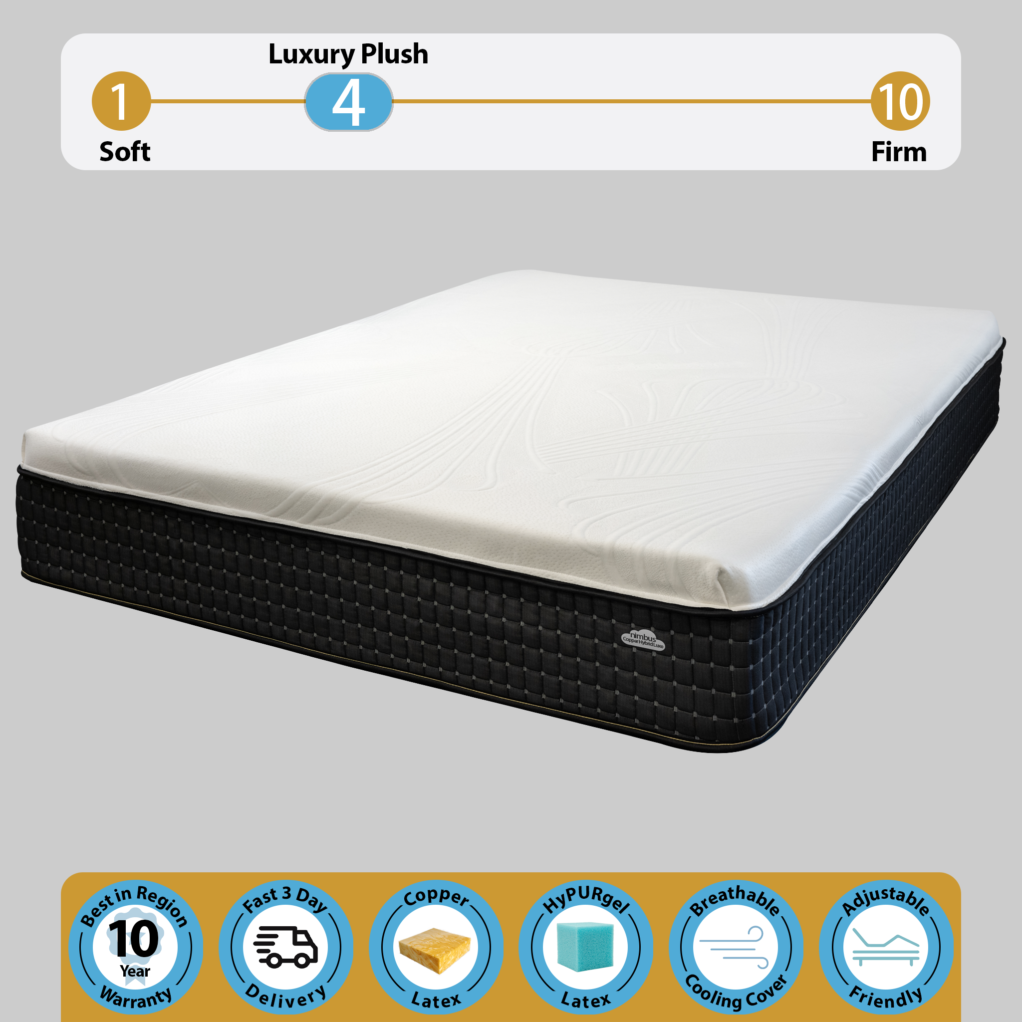 Experience an exclusive and distinctive sleeping encounter offered only by the Nimbus Copper Hybrid Luxe Mattress, thanks to the fusion of HyPURGEL and Copper Latex.