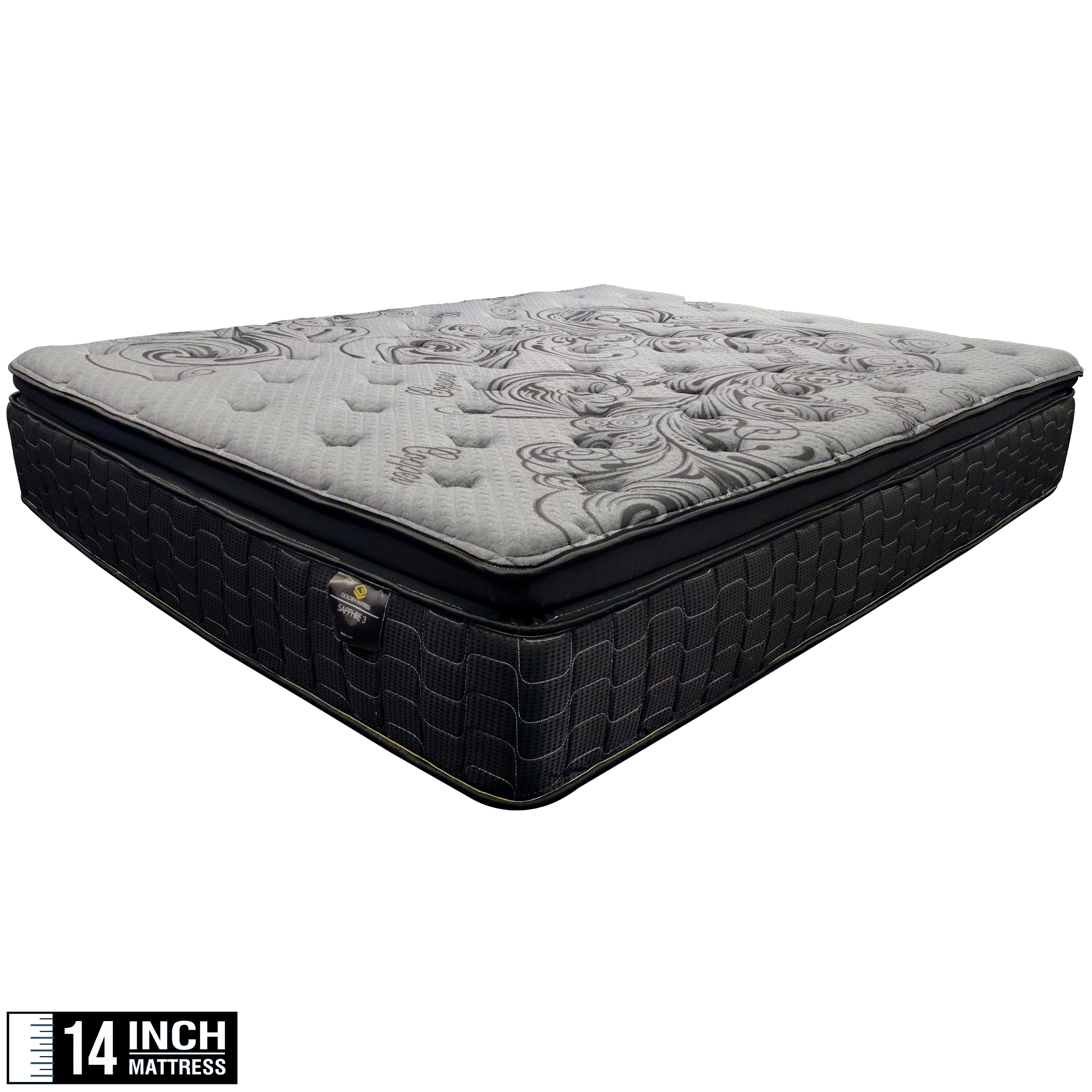 The Sapphire 3 is the latest in our Black Collection. It is much softer than the Sapphire 1. It's like sleeping on a cloud! This beautiful 14 in, plush mattress is sure to please any side, back or stomach sleeper. The Sapphire 3 is fitted with a 960 pocketed coil unit specially designed for outstanding comfort, low motion transfer, 2in super soft comfort foam, adjustable friendly and has the cool copper cover.